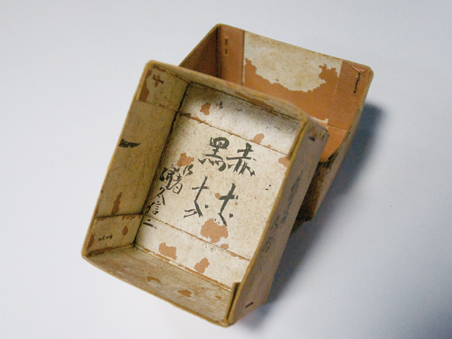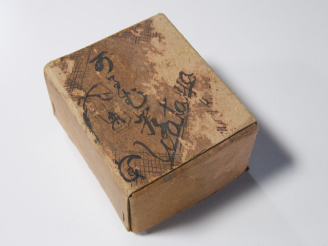 先日、彦根のカロム友達の井戸真也さんに古いカロムの玉を見せてもらった。それは、手作りでちゃんと箱に入っていて、作者の名前も入っていた。