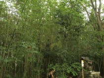 二の鳥居をくぐって右手、境内社の祠のそばに竹林が残っている。現在この竹が使われるのは、正月に行われる「管粥占(つつがゆうらない)」の神事のときのみだ。縦半分に切れ目を入れた竹を米・小豆と一緒に炊き、竹の中に入りこんだ米・小豆の量で豊作を占うそうだ。