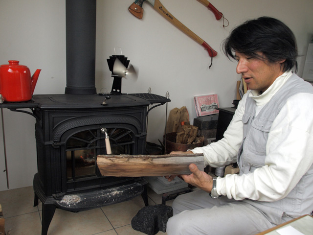 「薪に適しているのは、楢や樫、桜や欅などの広葉樹です。燃やしたときに木が燃え盛るのではなく、赤くいこった状態が続くんです。いこりは遠赤外線の効果で、暖かさが長続きします。逆に針葉樹は火はつきやすいけれど燃え尽きるのも早いので、火付け用として使います。桜や欅は独特の香りがあって好まれますし、木の特徴を生かして使い分けます」。