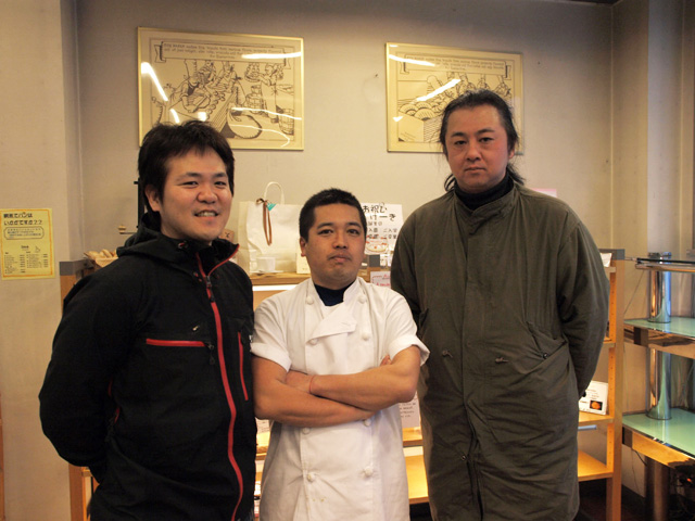 長浜で、出張もちつきをする集団がいる。名前を「長浜もちづくり役場」という。パン製造販売店「ポコ ア ポコ」を営む辻井孝裕さん(36)と、消防署員の西川孝夫さん(36)、そしてPC関連の仕事をする津田昭彦さん(40)の3人から成る。彼らは餅をつく理由をこのように答える。