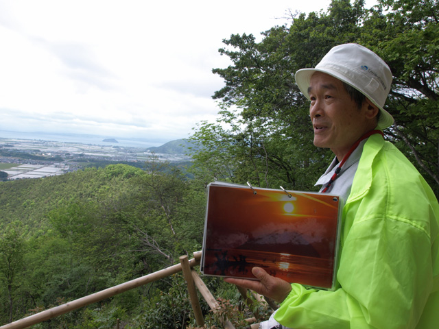 三宅さんのガイドではお手製フォトアルバムが登場する。ご自身が撮影された小谷城跡の様々なスポットの写真が引き伸ばしてある。例えば、江が生まれたと推測されている「大広間跡」。実際に見ている風景と同じ構図で、桜満開の春や雪に覆われた冬の写真を見せてくれる。「山城として、そして四季折々の表情も豊かな小谷城跡の魅力も共に伝えることで、再訪していただければ……」。