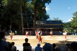 余呉町下余呉の太鼓踊り(滋賀県選択無形民俗文化財)が8月19日、乎彌神社で奉納された。僕は『緑に包まれた境内で揺れる「シャグマ」を見たい』と文章を書いた。それは実現した。