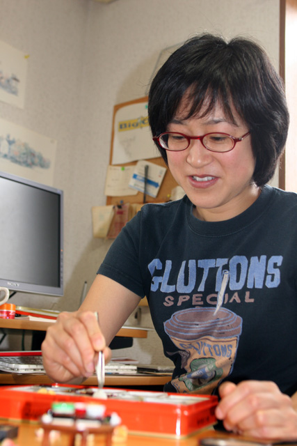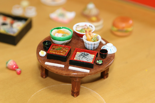 「食品サンプル好きが原点で、5年ほど前から作り始めました。樹脂粘土に着色して作る遊びです」という。遊びとはいえ、「定規と電卓は必需品」で、正確な縮尺と、本物のような質感をいかにして出すかが苦労でもあり楽しみな世界なのだそうだ……。