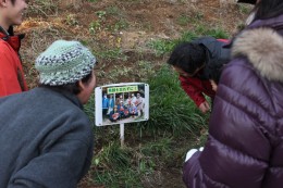 11月、寒空の下田の浦の集会所跡地に上丹生の球根が植えられた。無事に植えられたことを聞いて上丹生のおばあちゃんが「お嫁に行ったようだね」と言った。来年の春、上丹生育ちのチューリップが上丹生と田の浦で花開く。春はもうすぐだ。