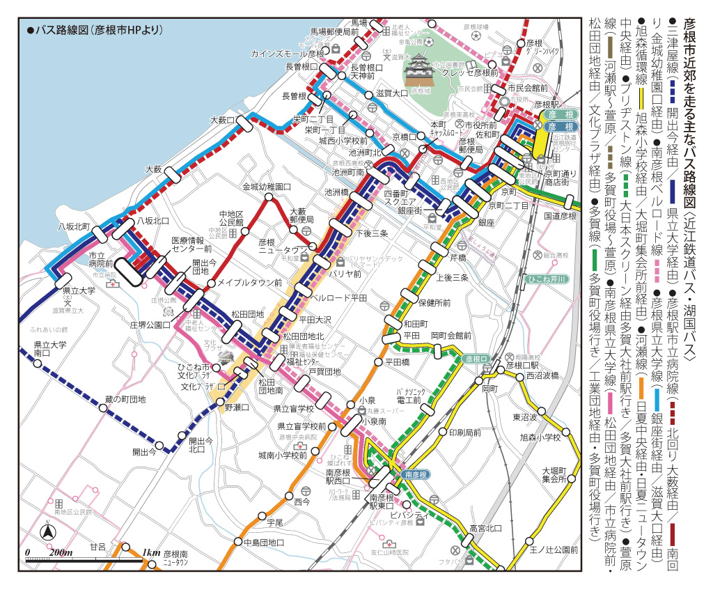 どうやら、彦根近辺では、近江鉄道バスと湖国バスが走っている。結構な路線数が残っているではないかと思ったが、近江鉄道バスの営業路線は、南彦根駅と県立大学を結ぶ、たった一路線になってしまったようだ。そして、残りの路線が彦根市からの補助金で運営される湖国バスのものであることに驚いた。