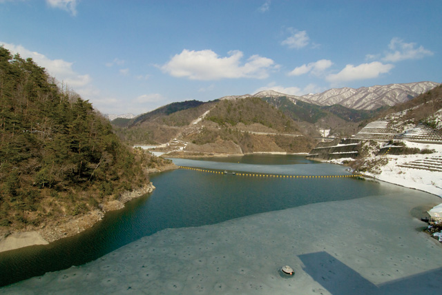 白いダムと谷をぬう湖の姿が、水害から人を守った龍のようにも見えるから。そしてこの辺りには龍の話が多いからだという。