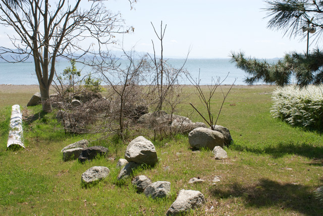 南浜をゆっくり歩くのは久しぶりだった。記憶とは随分異なっていたが公園整備が進み開放感のある場所になっていた。調査書には「現状は、長さ21m、幅4m、の石積みが残されているだけである」と記されているが、公園整備の途中で移された石もあるのだろう……何か大きな石が並んでいるなと判る程度に、今は存在している。