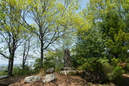 山頂には「東宮駐駕所」と記した石碑があった。裏には「明治四十五年四月二十七日 為陸軍参謀演習御見学」と書かれている。かつて「毎年のように陸軍の演習が湖東平野に展開された。(中略)中山道を中心に、南軍が大津方面から犬上川に戦列を敷き、北軍は米原方面から芹川に進軍して行われるのが常であった。明治四十五年、それは明治天皇が崩御される年で、代って東宮殿下がこの演習御見学の為、鳥籠山に登られたのである。」(『彦根郷土史研究24号』 彦根史談会 1988年)