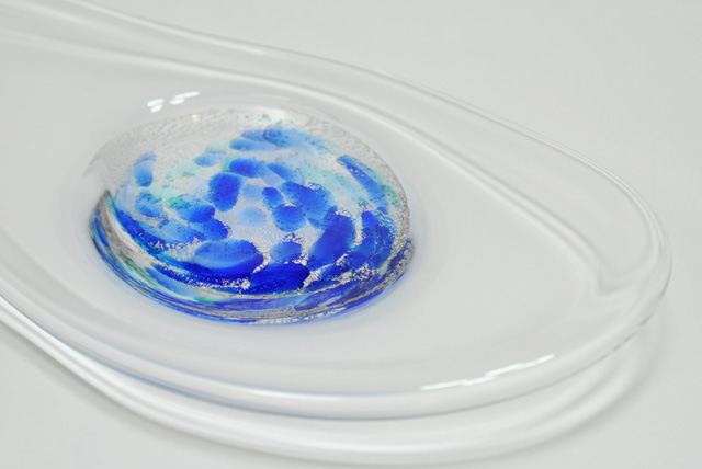 2011年、東近江市にオープンしたcafe & gallery Hakmokrenは、オーナーの有岡保行さんが築200年の商家を改装した和風の清々しく美しい建物。そこを会場に7月、ガラス工芸作家の小池やすしさんが個展を開く。小池さんは小樽のグラススタジオで修業した後、東京で2年、滋賀県で8年間創作活動を続け、その後拠点を京都府綾部市に移した。滋賀県での作品発表は約18年ぶり。