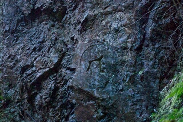 さて、この天狗岩の梵字は磨崖仏(まがいぶつ)として彫られたらしい。磨崖仏は自然の岩壁に彫られた仏像をいう。ならば、この梵字は仏像を示しているはずである。調べてみるとどうやら「歓喜自在天(大聖歓喜天)」を現す梵字らしい。歓喜自在天は「聖天さん」のことだ。