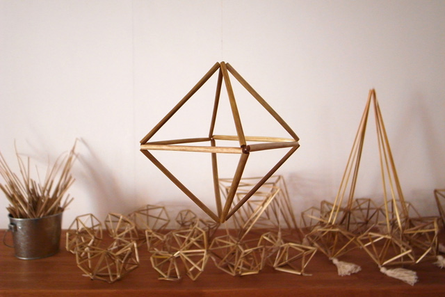 今回のワークショップでは、農園たぴとで収穫した麦わらを用いて、ヒンメリの基本形となる正八面体をつくる。この正八面体をマスターすれば、組み合わせで大きなオリジナルのヒンメリをつくることも可能になるそうだ。