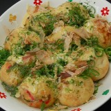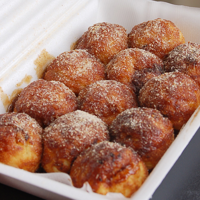 たこ焼き歴10年のマスターが、日本中から厳選した素材を使って焼き上げている。5月に生地の出汁を改良し、素味でもより豊かな風味を楽しめるようになった。一番人気のネギマヨは、シャキシャキとした食感で飽きがこない逸品である。