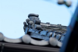 屋根瓦の図像は様々で、龍だったり、恵比寿、大黒、或いは波に家紋をあしらったものや宝珠など、その家で暮らす人々の願いが屋根には載っている。 彦根の松原で、今まで見たことのない屋根瓦を見つけた。正面から写真を撮ることができなかったので全体は解らないが、子どもが3人、リアルな屋根の瓦があった。