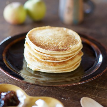 シロップやジャムを添えて食べるのもよいですが、甘味をおさえた生地の配合になっていますのでチーズやハム、野菜を混ぜ込んでお総菜のパンケーキにするのもおすすめです。全粒粉がなければ全量薄力粉に、牛乳と生クリームの割合もお好みで調節してみてください。生クリームが多くなるとよりふっくら仕上がります。冷めてもしっとりふわふわした食感のパンケーキをぜひお試しください。