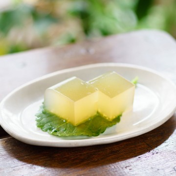 この時期、青梅を使って梅シロップを仕込まれる方も多いことと思います。梅シロップを水割りやソーダ割りなどドリンクで楽しむ以外に、寒天を使って喉ごしのよいデザートにしてみてはいかがでしょう。シロップの甘さはご家庭によって様々ですので砂糖の量は調節してください。寒天液はじゅうぶんに煮溶かさないと固まりませんので、沸騰させた状態でふきこぼれに注意しながらしっかり煮溶かすのがポイントです。
