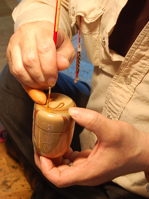 坂根さんは、高校を卒業してからすぐに蒔絵の世界に入り、以来、問屋から依頼される職人仕事にあわせて作家としても活動を続けている。