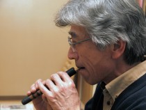 尾本さんの作る古典笛は全体的に少しふっくらして、ふくよかで優美な姿が特徴だ。音にもふくらみが出て、時空を超えてゆったりと流れる調べに……、琵琶湖を抱くこの地にふさわしい音色であるように思う。