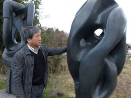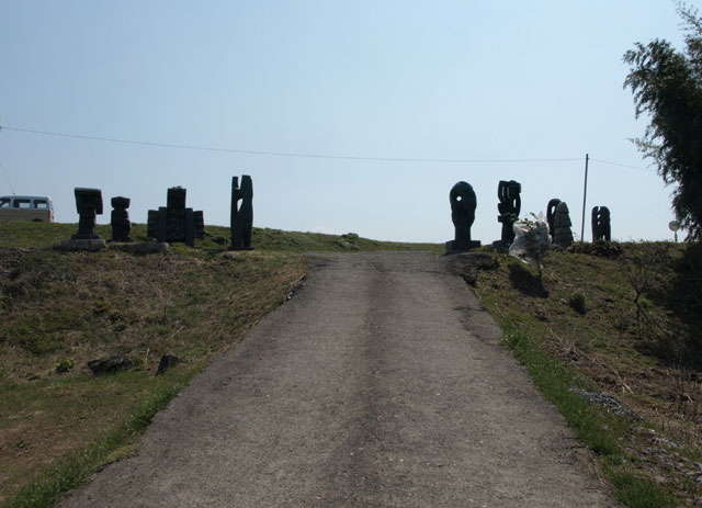林の創造者は、長谷川喜男さん(55)、学生時代から石彫の作品制作を続けているという。石という塊は、すっと大地から立ち上がり、不規則な穴が空いているものが多い。
