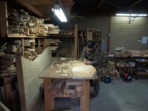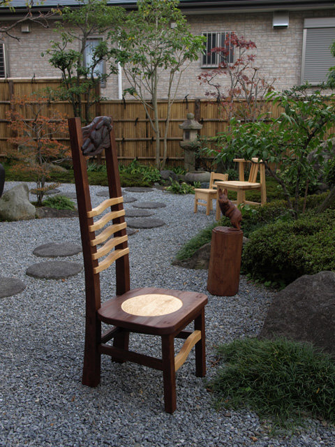 平尾さんは椅子やテーブル、棚など「木の命を繋ぐ」家具を作る人である。動物などをモチーフに木工彫刻をも手がけている。