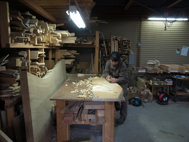 高校で美術の講師をしていた……。宮大工の棟梁に弟子入りし、木と関わるようになった。独立して工房をもって、10年が過ぎる。