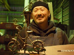 もともとは岐阜県関市で鉄工所に勤めながら製作活動をしていた。芸術家志望だったわけではないが、自分を表現したいという衝動にかられ独学で作品を製作するようになったのだという。その作品は、それが金属であることを忘れてしまう美しさがある。2010年製作の「雪椿」は葉の一枚一枚やめしべの花粉までもが繊細に表現され、国内のみならずフランスからも評価を受けた。