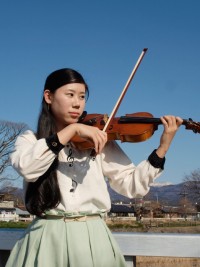 今回の演奏会では4人のヴァイオリニストが1台のヴァイオリンをリレーして演奏するのだが、その1人が彦根市在住の足木かよさん(24)である。足木さんはこの春愛知県立芸術大学の大学院を卒業し、フリーのヴァイオリニストとして彦根市中藪でヴァイオリン教室を本格的に始める。地元の人たちにヴァイオリンやクラシックを少しでも身近に感じてもらいたいと、先日開かれた彦根出身の若手音楽家たちが年に一度地元に集結し行う演奏会では運営にも積極的に関わった。今回の出演も、それが縁で依頼されたのだそうだ。