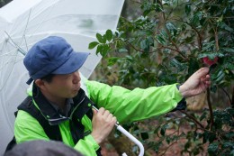 森林レンジャーの仕事は、植生の調査や希少植物の保護、訪れる人のガイドなど多岐にわたる。動植物の知識も豊富で、調査・研究も行う。昨年は山門水源の森に群生するユキバタツバキの調査を行ったそうだ。ちょうどユキバタツバキの観察会があるとのことでお誘いいただき、観察会に参加することになった。