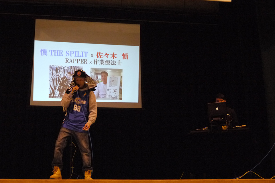 慎 the spilitこと佐々木慎さん、MINIYONこと田中孝史さんは、それぞれ作業療法士として働きながら、音楽活動をしている。ふたりは滋賀医療技術専門学校を卒業後、同じヒップホップ・ミュージックのジャンルで活動するOB同士として出会い、一緒にステージに立つようになった。作業療法士として働くなかで日々感じていることをヒップホップ・ミュージックで伝えたいという思いが、ユニットを組むきっかけだったとふたりは話す。