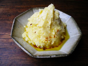 私が作るポテトサラダは、キュウリやトマトなど、じゃがいも以外の具もたっぷり。その方が見ためもカラフルだしヘルシー…なんて思っていたのですが、とあるビストロで衝撃のポテトサラダに出会いました。具はじゃがいものみ。それにアンチョビオイルがたっぷりかかり、見るからにカロリー高そう。でも、箸が進む、酒も進む。この潔いポテトサラダに完敗です。以来、我が家のポテトサラダは潔いバージョンに。それ以外のおかずで、野菜たっぷりヘルシーにすればいいんです。