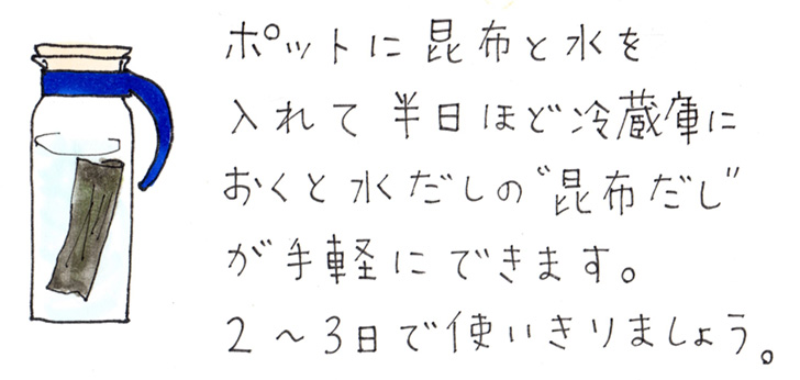 - 1とAを鍋に入れ、昆布だしで溶き伸ばして冷やす。