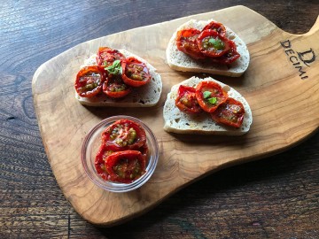 例年にない遅い梅雨入りで、7月に入っても涼しい日々。それでも、セミが鳴き、1学期が終わり、夏になりました。ミニトマトも旬を迎え、手頃な価格になるので、たくさん買ってオーブン焼きにし、常備菜にしています。生でもないドライでもないトロンとした食感と、ぎゅっと濃縮された甘みがなんとも美味。バゲットにのせてどうぞ。