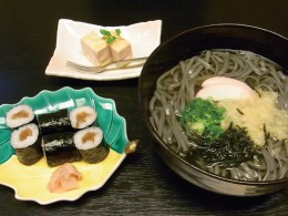 メニューは「黒田」にちなんだ「黒うどん」、「官兵衛」にちなんだ「かんぴょう巻き」、そして季節のデザート。「くろ」にちなんで、価格も960円だ。