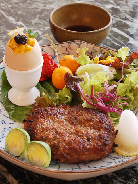 素材への熱伝導を考慮して、鉄ではなく竹の串を使っていること。ハンバーグだけは、最初に鉄板で焼き上げてからオーブンで仕上げるのが一番甘味を引き出せること。炭火串焼はお客さんの食べるペースにあわせて焼き上げていること。日々、微妙に変わる炭火の調整に一切の妥協をしないこと……冬の食では、それらを全部楽しんでいただきたいと、「沙斗羅」の20年間の魅力を結集させたのだそうだ。