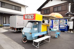 8月下旬、夢京橋キャッスルロードに突如現れた三輪トラックの屋台。黄色と赤で彩られた車体には大きく「ONO THIC’S」と書かれている。三輪トラックの車両は、イタリア・ピアジオ社のベスパ・カー。荷台部分を改造して屋台仕様にしてある。見るからにアジアンテイストなその外観は、登場以来話題を呼んでいたようで、気になっていた方も多いのではないかと思う。