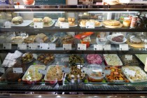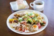 僕は、デリ12種類盛りセットを注文。メインの料理にイタリアのローストポーク「ポルケッタ」を、スープはゴボウとレンズ豆のカレースープ、食事はフォカッチャを選んだ。大きなお皿にはメイン料理を中心に12種類のデリが盛り付けられ、そのどれもが「ちょっと変わった」味がして美味しい。食材は地元のものを多用し、味付けはアメリカ仕込み。この組み合わせが絶妙のハーモニーを生んでいる。「ちょっと変わった、よそとは違う味付け」は評判で、外国人のお客さんからも人気を博しているそうだ。