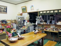 お米だけではなく、手づくりの小物から全て「金居原産」なのだという。もちろん、電気工事も店内の重厚な木のテーブルも、どれも金居原を故郷に持つ人たちの手づくりである。「金居原を出てしまった人でも地元に帰ってきたとき、自分の手がけたお店があるっていいじゃないですか」と一司さんが教えてくださった。秋に見た店先のオープンカフェ(コーヒースペース)も、一司さんや金居原の人たちで協力してつくったものだ。夏はここが絶好のビアガーデンになるのだという。