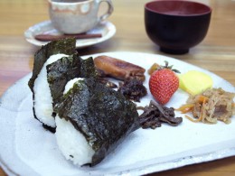 「金居原のお米は本当においしいんですよ」とおふたりからすすめられたのが、おにぎりだった。注文してから律可さんが握ってくれるおにぎりはほかほかとあったかく、海苔の香りが空腹を刺激する。おいしいお米の秘訣は、寒暖の差の激しい金居原の気候にあるのだという。それ以上に私が感動したのは、塩のあんばいとほろりとくずれるその握り具合で、あっというまに胃におさまってしまった。