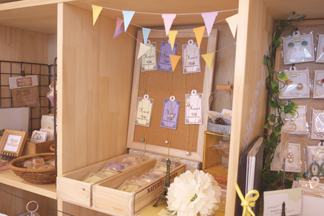 また、店内に設置された棚にはアクセサリーなどの品々が並んでおり、購入できる、これもまた、手作りが得意なママたちによるものだ。「子育て期間中に資格を取ったり、手作りしたり。ママって特技のある人多いんですよ。そういうことを活かせる場所にもなれば」と宮本さん。