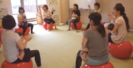 また、午前中はママ向けのヨガや講座、専門家による発達相談などが毎日行われている。講座はすべて、こうした資格や特技をもつママが講師になっている。この日はバランスボールの講座が行われており、赤ちゃんを抱いたままママたちが参加していた。保育士さんも付いているので、赤ちゃんをあずけることもでき、安心だ。ただカフェで隣り合うだけではなかなか親しくなれないかもしれないが、こうした講座で一緒になって仲良くなることもあるそうだ。