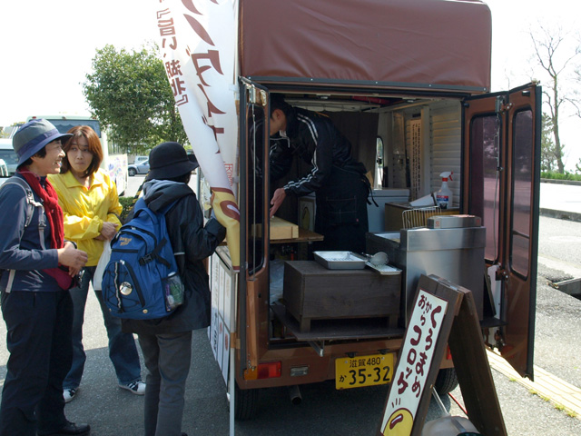 道の駅「旬彩の森」(旧伊吹町)、「湖北みずどりステーション」(湖北町)「近江母の郷」(旧近江町)を日替わりで巡回。午前9時半〜午後5時半ごろまで / 木曜休