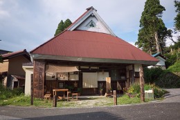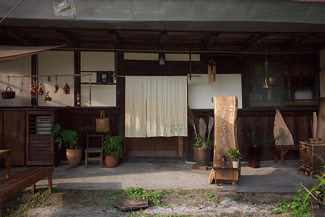 そんな集落のなかに「山のごはん よもぎ」はある。車の扉を開けた途端、よもぎの匂いが漂った。原っぱによもぎが自生している。香りを吸い込み、古い民家の軒先に吊られたのれんをくぐると、上野華江さんが出迎えてくれた。