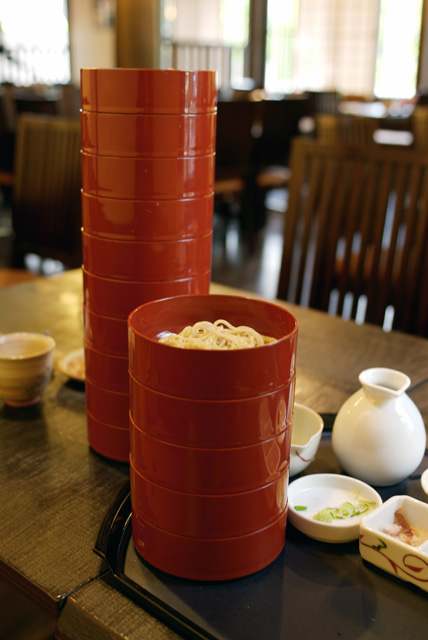 蕎麦でお腹をふくらまそうなどとは、丹誠込めた蕎麦に失礼である。淡々と盛り蕎麦をいただいたあと、運ばれてきたそば湯を味わいながら、「今までの最高は何段か?」「一段は何グラムか」「制限時間はあるのか?」「何段くらい食べるとお店の方々は注目し始めるのか」などと尋ねていた。 持ち時間30分、一段50グラム、通常は三段の「よろい重そば」が五段ずつ運ばれる。最高は三十段は越えたらしいが正確なところは判らない。十五段を越えると注目されるらしい。既に、日を改めて、やる気になっていた。自信はあった。蕎麦に失礼なのと、人の目が気になるので、午後3時から4時頃がねらい目である。