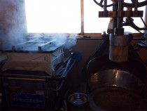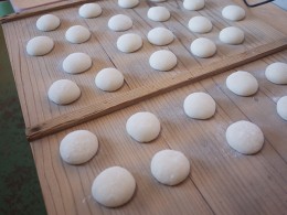 道次商店の台所には、ひときわ大きな存在感の、餅つき機がある。もちろんこれも美津枝さんが使っていたもの。「餅つきは必死です」と彩矢果さん。餅つき機を動かすと、石臼に大きな杵がどすん、どすんと迫力のある音を立てて降りてくる。その間に、すばやく餅を返していく。重い杵だからこそ、お餅をおいしくたくさんつけるが、これはまさに必死の餅つきだ。餅がつき上がると、熱々の餅を切り、粉をつけて、すばやく丸めていく。表の面がきれいになるよう、裏の面へ捏ね込むようにくるくる丸めていく手つきがもの珍しい。「これもおばあちゃんのやってたやり方ですよ」と京子さん。お客さんも、美津枝さんがお店をしていた頃からのお客さん、京子さんの世代、彩矢果さんの世代のお客さんと、幅広いお客さんが訪れるという。使い込まれた道具、二人のお菓子をつくる手つき、お客さん。お店のそここに、二人が「おばあちゃん」と呼ぶ、美津枝さんから受け継いだものがある。