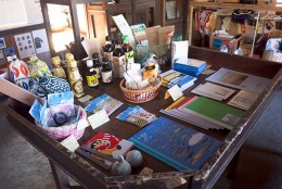 店に並べられた品物をよく見ると、昔懐かしの駄菓子、古道具、滋賀県内でつくられているお茶や食べ物、滋賀の作業所で作られた品物、コクヨのびわこ文具、缶詰やインスタント食品など、今も昔も出自も用途も入りみだれた様々なものがあり、まさに「よろず屋」。「これは?」と思うものでも、なぜこの店に置いてあるのか、ひとつひとつに理由がある。そんないわれを実さんや美智代さんに尋ねていると、時を忘れてしまいそうだった。