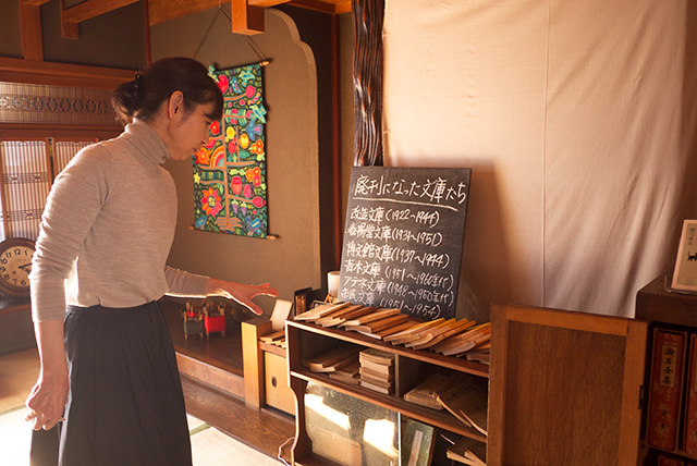 あいたくて書房は、戦後間もなくに建てられたという古い民家にある。それぞれの座敷に並んだ本棚から好きな本を選び、読むことができる。絵本、古い文庫、その時代の暮らしを刻んだ生活雑誌、存在感のある布張りのハードカバー…。本によっては、借りたり、買うこともできる。不要になった本を、託すこともできる。「なに屋さん?と聞かれるのが一番困るの」と、「木之本虫プロジェクト」の代表で、あいたくて書房のブックコーディネーター、久保寺容子さんは笑った。