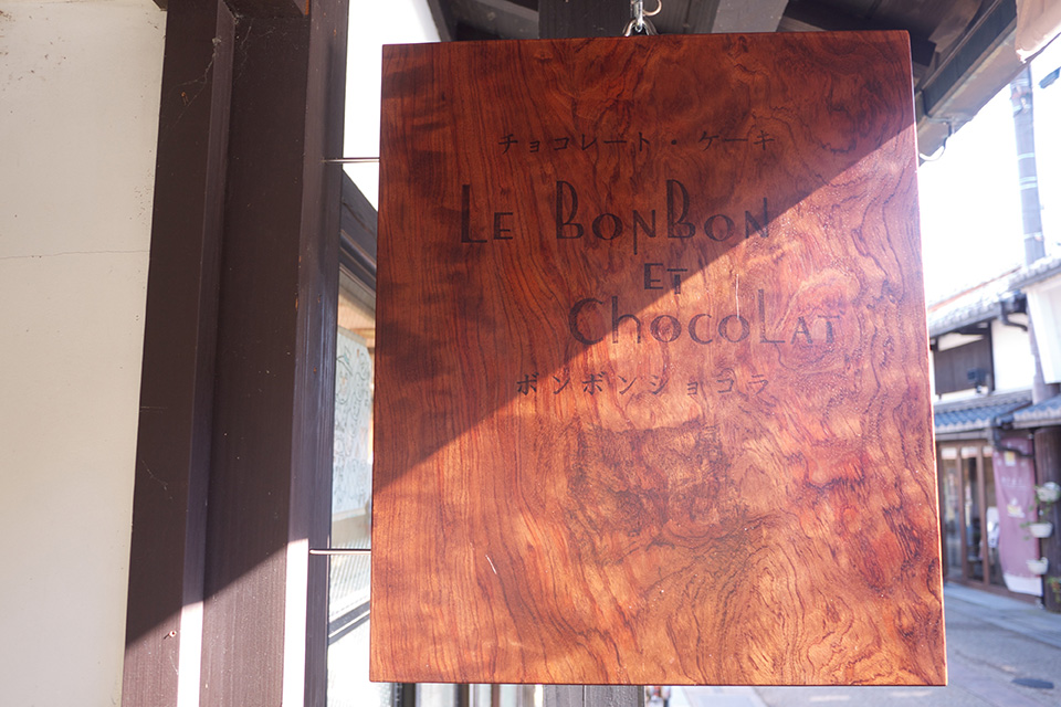 黒壁スクエアの喧騒から少し離れた大通寺近くの通りに、小さなチョコレート専門店ができた。お店の名まえは「ボンボンショコラ」。口にするだけでこころが弾むようなこの店名は、フランス語で「le bonbon et chocolat」。ひとくちサイズの小さなチョコレートのことなのだそうだ。