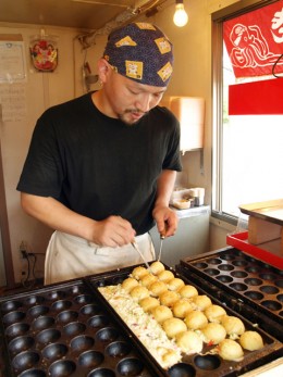 たこ焼きのポイントは何か、ということをときどき考える。というのも私は大のたこ焼き好きだからである。その基準のひとつに、生地の堅さ加減というのがあると思う。モチモチかトローリか、のどちらかの食感に大別されるのではないだろうか。