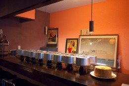 店の名まえは「シフォンケーキ yon」。店のドアを開けると、磨かれたアメ車やバイクが暗めの照明に照らされ、どことなくアメリカンな雰囲気。一瞬店を間違えたかと思いかけたが、店主の高山洋子さんが「いらっしゃいませ!」と笑顔で迎えてくれた。洋子さんの立つカウンターには、シフォンケーキ型が逆さになった状態でずらり。紛れもなく、シフォンケーキ屋である。