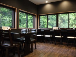 店の中へ入ると、谷に向かって開かれた窓に映える緑の色に目を奪われた。店主の藤本君子さんは「ここから見える四季の風景が一番のごちそうですよ。台風の後は水底の石が洗われて真っ白になって、水はエメラルドグリーンに澄んで、本当にきれい。靄が出た日も、雪の日も…その日ごとにきれいな風景が見られます」と話してくれた。