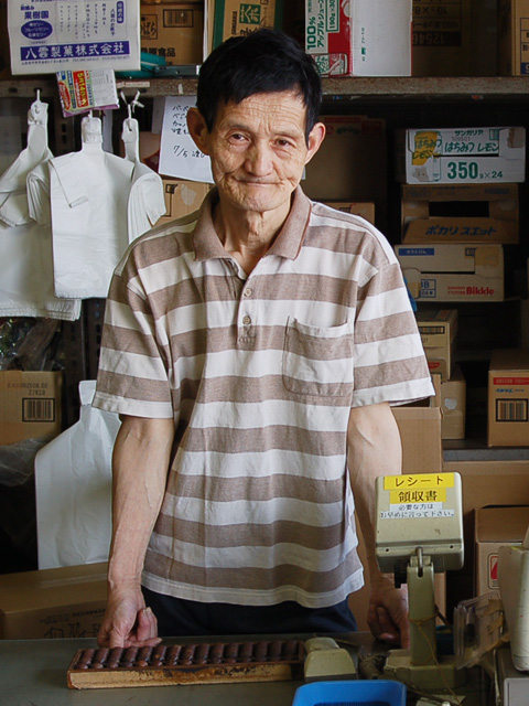 「三口屋」にはグミだけで約40種類が常時、揃えられている。その日の気分にぴったりの駄菓子を持って行くと、川口さんがそろばんで勘定する。その光景は今も昔も変わらない。